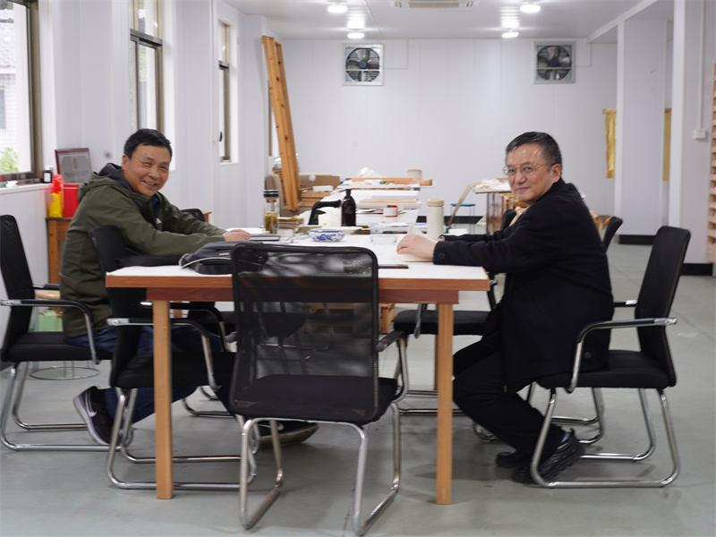 2021.4.13著名書法家劉老師、徽墨大師來公司參觀學習,了解楮皮紙技藝,如何做出好楮皮紙,挑選好紙。