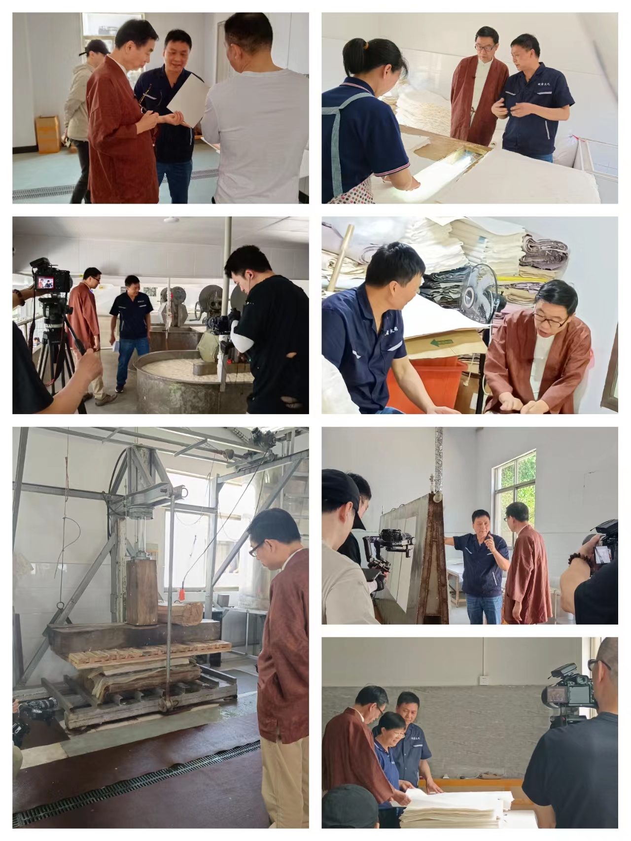 在黃山市凝霜文化發(fā)展有限公司,欄目攝制組全程記錄徽州楮皮紙第二代傳承人、非遺傳承人朱建新的徽州楮皮紙制作技藝?!段幕笥^園》總策劃、主持人王魯湘詳細了解徽州楮皮紙的優(yōu)勢,制作的傳承和發(fā)展,并與徽州楮皮紙第二代傳承人朱建新面對面暢聊古法造紙和新技的結合。